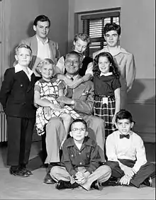 NBC announced the show would be on its fall schedule, with Pinza starring, in mid-August 1953.[12] The signing of Mary Wickes, Mike Kellin, and David Opatoshu to the cast was reported a few days later.[5] The projected budget for eight children proved expensive enough that producer Fred Coe reportedly considered cutting down the cast.[13] The solution was to turn two of the child characters (portrayed by Lucille Graygor and Paul Jonali) into non-speaking roles, essentially making them "extras" with much lower pay. Only six of Bonino's children would have speaking parts.[14] An additional expense dodge was that the oldest and youngest children, Edward and Andrew, did not appear until episodes 5 and 4 respectively.