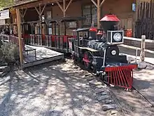 The two-story Bonnie Springs motel included a swimming pool and themed rooms such as Chinese, Spanish, and American Indian.[13][81] The motel had 48 rooms, some of which include a jacuzzi.[81] The ranch also included the Red Rock Riding Stables, with pony and horseback riding.[25] The ranch's outdoor arena included bleacher seating used for events such as rodeos.[54][82] On weekends, a miniature train provided optional transportation from a large parking lot to the ranch's motel and the Old Nevada western town. A smaller parking lot was located near the entrance to Old Nevada.[2] In February 2018, after a year of negotiations, the ranch was expected to begin offering helicopter tours of Red Rock Canyon.[83]