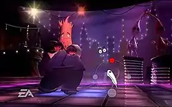 Boogie is a music video game developed by Electronic Arts for the Wii, PlayStation 2 and Nintendo DS. Being touted as a party-game, it enables players to create their character, then use the Wii Remote and a microphone to sing and dance through it.[4] Each song within the game can be performed either as a karaoke or as a dancing game. The game is based around an alien theme. It was one of the first games released in Brazil for the Wii. Although anticipation was high for the game, it received mixed reviews.