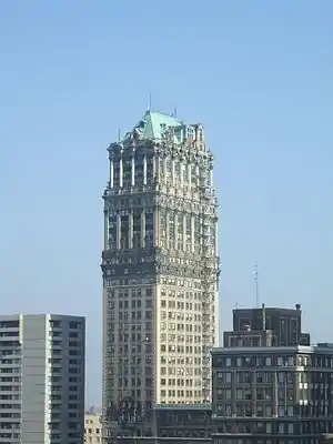 The Book Tower is a 145 m (476 ft), 38-story skyscraper located at 1265 Washington Boulevard in Downtown Detroit, Michigan, within the Washington Boulevard Historic District. Construction began on the Italian Renaissance-style building in 1916, as an addition to the original Book Building, and finished a decade later. Designed in the Academic Classicism style, it has 38 rentable floors, two basement levels and two mechanical floors.