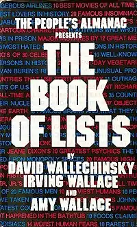 The Book of Lists refers to any one of a series of books compiled by David Wallechinsky, his father Irving Wallace and sister Amy Wallace.[1][2][3][4][5][6]
