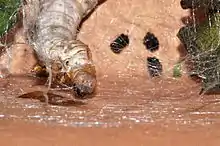 The Aztecs, Mixtecs and Zapotecs used and traded[105] a silk material taken from the large nests made by two indigenous insects, the moth Eucheira socialis[106] and the butterfly Gloveria psidii.[107] The nests were cut and pieced together to make a fabric, rather than extracting and weaving the fiber as in modern silk. Weaving of silk from what are thought to be the same insects has been reported in more recent times, though its use in pre-Columbian times has been debated.[108]