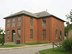 Booker T. Washington School is a historic school building located at Rushville, Rush County, Indiana. It was built in 1905, and is a two-story, "T"-plan, vernacular brick building with Romanesque Revival style design elements. It has a low-pitched hipped roof and features round and segmental arched openings. The building served as the focal point for the African-American community of Rushville.[2]: 2–3 It is currently being used as a neighborhood community center and is home of the local Head Start program.