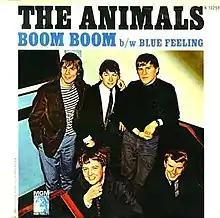 English rock band the Animals recorded "Boom Boom" for their 1964 UK debut album The Animals. Their blues-rock[19] rendition generally follows John Lee Hooker's original, although they add "shake it baby" as a response to the "come on and shake" refrain in the middle section,[20] taken from Hooker's "Shake It Baby" (recorded during the 1962 American Folk Blues Festival tour in Europe, where it became a hit in 1963).[21]
