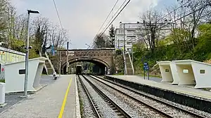 Boondael railway station (French: Gare de Boondael) or Boondaal railway station (Dutch: Station Boondaal) is a railway station in the municipality of Ixelles in Brussels, Belgium, operated by the National Railway Company of Belgium (NMBS/SNCB). The station lies on line 26, between Delta and Vivier d'Oie railway stations, respectively in Auderghem and Uccle.