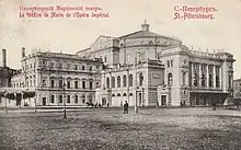 Meanwhile, Pushkin's drama (18 of the published 24 scenes, condensed into 16) finally received its first performance in 1870 at the Mariinsky Theatre, three years in advance of the premiere of the opera in the same venue, using the same scene designs by Matvey Shishkov that would be recycled in the opera.[9][10]