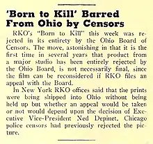 - "Ohio's Censors Reject RKO's 'Born to Kill'", The Film Daily (New York, N.Y.), April 19, 1947, p. 4. Internet Archive. Retrieved September 14, 2020.