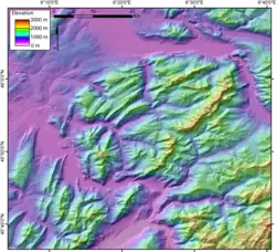 The massif is bounded on the east by the Thônes depression and the Aravis Range, where the highest peaks of the Northern Prealps are to be found, to the south-west by Lake Annecy and the Bauges Massif, and to the north by the valley of Arve and Chablais. The name "Aravis Massif" is also used to refer to the whole massif, possibly an effect of tourist marketing.