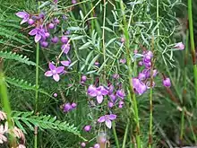 Boronia rivularis, commonly known as the Wide Bay boronia,[2] is a plant in the citrus family Rutaceae and is endemic to the Wide Bay–Burnett area of eastern Queensland. It is an erect, woody shrub with pinnate leaves and white to pink, four-petalled flowers.