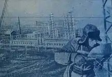By the Decision of the Council of Ministers (H.C.M.) No. 1635/1952, it was envisaged that in the Bacău Region, Târgu Ocna Raion, the construction of Borzești Industrial Group and the related proletarian city, Onești. The industrial zone was built northeast of the former village of Borzești, between the railway and the Trotuș River, its surface exceeding that of other parts of the city. As a result of this decision, in 1952, the colonies for construction workers began to be built and then the foundations of the first apartment buildings.[4] At the city and industrial sites have worked alongside construction workers assembled in colonies and common law detainees or political prisoners.[8] Soon the city had the highest number of intellectuals per thousand inhabitants, and the average age was 28 years old.[11]