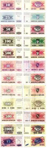 Along with the Croatian dinar and Yugoslav dinar, the Bosnia and Herzegovina dinar was unstable.[1]