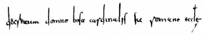 "A Decree of Lord Boso, Cardinal of the Holy Roman Church", in an old Visigothic script, as it appears on the only surviving copy of the acts of the council of Burgos of 1117