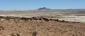 The Jaramillo Petrified Forest National Park is a protected area of petrified forest located in the Deseado Department, in the northeast of Santa Cruz Province, Argentina. Formerly part of the site was a natural monument, established in 1954 and known as the Petrified Forest Natural Monument, covering about 13,700 hectares (34,000 acres). This area has remnants of a forest preserved in stone, that had been growing on the site before the upthrust of the Andes some 150 million years ago.[1] In December 2012, further land was added and the protected area was reclassified as a national park with a total area of 78,543 hectares (194,080 acres).[2]