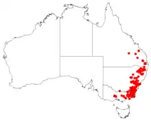 Matted bossiaea grows in forest and woodland occurs south from Kroombit Tops National Park in south-eastern Queensland, along the coast and tablelands of eastern New South Wales and the Australian Capital Territory to the ranges east of Omeo in eastern Victoria.[2][3][4]