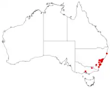Bossiaea scolopendria grows in heathland and forest on sandstone in near-coastal areas of central and southern New South Wales.[4][5]