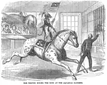 In 1862 P.T. Barnum "bought the establishment and closed it for extensive renovations. When it reopened as Barnum's Aquarial Gardens he announced that the Gardens would be associated with the American Museum in New York and that he hoped 'to form such a happy blending of amusement with instruction so as not to depend solely upon the scientific public for support, but to render this establishment attractive and popular with all respectable classes.' James Cutting was then engaged to remain at the Gardens and take charge of the living whale, the seals, and other rare animals."[3][8]