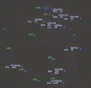 The primary Final sector for arrivals to Boston Logan. Most arrivals will talk to this controller before being transferred to Boston Tower. Final 1 generally owns airspace up to 6,000 feet (1,800 m) within about 8 miles (13 km) either side of the final approach course in use. Depending on the runways in use, this sector may or may not be combined with Final 2.