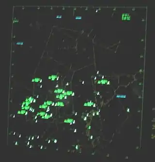A90 is equipped with multiple plasma flat-screen television screens which are used to display up to 16 different types of information needed by supervisory, traffic management and controllers-in-charge ranging from ETMS to Weather. Although they can be set to display almost anything, they will usually be set to one of three things. Commonly, a map of the Northeast United States will be displayed that shows all traffic landing or departing at Boston or Boston Satellite fields. This allows the controllers to look up at the screen and quickly tell if there is a rush about to come. Also commonly displayed is the IDS5 display. This information is also shown on a small touch-screen above each controller's station. Also, commonly displayed above the Initial Departure sector is a live video feed from Boston Tower showing the departure strip bay. This camera system is used to satisfy the requirement for "non-verbal rolling notification" as required by FAAO 7110.65. What is displayed on each screen can be changed at one of the center console positions, which is controlled with a computer touch screen.