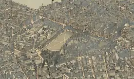 The conflict between the City of Boston and the Commonwealth of Massachusetts was finally resolved when the Tripartite Indenture of 1856 was agreed to by both parties and passed a general vote of citizens 6,287 to 99.[10] In the agreement, Boston gave up its rights to build upon the Public Garden; in return, it received a strip of land which is now a part of the garden, abutting Arlington Street.[11]