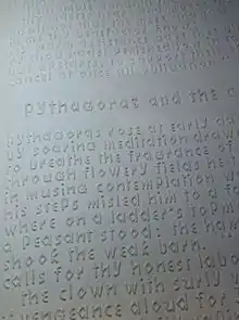 By 1868, N.B. Kneass, Jr., a printer in Philadelphia, had adapted what became known as a "combined system" which used the lower case forms of Boston line letter and capital letters from a rival tactile system known as Philadelphia Line.[2] Until replaced by dot systems this hybrid form of raised letters was the predominant embossed type for blind people in the United States and the choice of most of the schools.