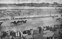 Botafogo's racing career began as a two-year-old in a 1000 meter race where he beat ten other horses in 1:00+3⁄5.[9] He next ran in the 1000 meter Clásico Guillermo Kemmis on March 11, 1917. He won the race easily by one and a quarter lengths in a time of :59+3⁄5.[8][10] Botafogo made a great impression with the win, but didn't race again until May 26, when he won the 1400 meter Clásico Salvador J. Boucou at Hipódromo Argentino de Palermo under jockey Jesús Baslías. He covered the 1400 meters in 1:24, winning wire to wire in a gallop by several lengths.[11][12]
