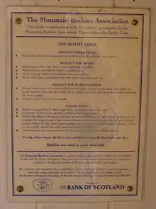 - Staff. "Bothy Code". mountainbothies.org.uk. Retrieved 24 February 2020.