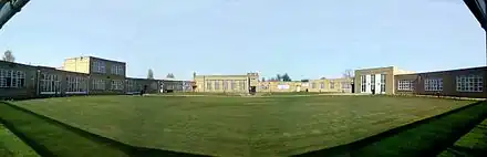 World War II, however, was a testing time for Bottisham Village College, especially with an airforce base in the village. The British and American airmen played a large part in the life of the college, attending school dances but also other functions at the school. Staff stayed up all night on watch on top of the school buildings, watching for incendiaries, and with the rationing of clothing, school uniform was absent from life at the school until 1946. During the nationwide 'Dig for Victory' campaign, the tennis courts, located behind the warden's lawn, were converted to cabbage patches in an attempt to grow as many vegetables as possible.[6]