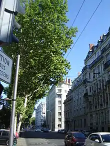 ![]() The street viewed from the Porte Duquesne of the Parc de la Tête d'Or | |