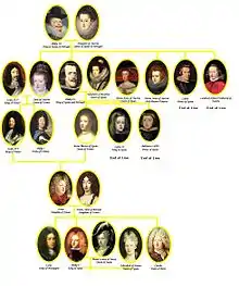 Family tree of claimants to the Spanish throne following the death of Charles II