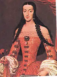 Born as Archduchess María Teresa of Austria, Infanta of Spain at the Royal Monastery of El Escorial, María Teresa thus combined the blood of Philip III of Spain and Margarita of Austria, on her father's side, and that of Henry IV of France and Marie de' Medici, on her mother's side. In his turn, Philip III was the son of Philip II of Spain and Anna of Austria who was, herself, a daughter of Maximilian II, Holy Roman Emperor and Maria of Spain. Philip II and Maria of Spain were siblings, being both children of Charles V, Holy Roman Emperor and Isabella of Portugal. María Teresa, therefore, like many Habsburgs, was a product of years and generations of royal intermarriage between cousins.
