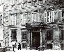 The definitive Perugian consecration of the marquises came in 1780, when the Marquis Uguccione III, through the mediation of Cardinal Giovanni Ottavio I Bufalini,[27][28] bought a prestigious building that belonged to the Eugeni family, located in the center of town on Piazza del Giglio (now Piazza Piccinino). He made it his main residence after a long series of restoration and expansion works, which continued for at least 13 years, from 1781 to 1794.