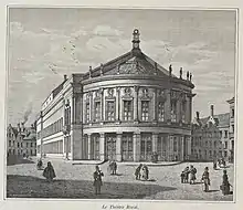 Bourla Theatre (also known as Bourlaschouwburg) is a theatre located in Antwerp that seats around 900. The building is designed in a neoclassical style on the site of the former Tapissierspand tapestry market. The theatre was designed on request from the city in 1827 by the city architect Pierre Bourla. Construction began in 1829, but was delayed due to the Belgian Revolution.[1] The theatre was finally finished in 1834 and opened under the name, Grand Théâtre or Théâtre Royal Français, on account of its ownership by a French company.[2] Presently, the Bourla houses the theatre company Het Toneelhuis, which is a merger of the companies, Koninklijke Nederlandse Schouwburg and Blauwe Maandag Compagnie.[3]