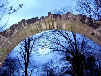 Three antiquated, but currently unidentified, ruined buildings stand deep within the woods of the original estate. In the early 1980s, two arches stood side by side in the northeastern quarter. These are known to have served some purpose involving the coming and going of traffic. The oldest entrance (and subsequently the oldest driveway) once led the visitor directly to the twin arches. Sadly, only one of these fine structures still remains, while the other has been progressively vandalised over the last two decades.