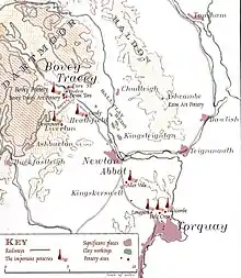 The Bovey Tracey Potteries were a collection of potteries in the Bovey Tracey area of Devon, based on the clay from the Bovey Basin. Pottery making developed in the area developed on an industrial scale from around 1750 and lasted for around 200 years under various owners and names.[1]