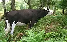 BPV-4 causes squamous cell carcinomas of the alimentary tract, and BPV-1/2 causes carcinomas and haemangioendotheliomas of the urinary bladder, in both cases in animals that have fed on bracken (Pteridium aquilinum).[3] Such cancers are common in locations where grazing land is infested with bracken, such as the western Scottish Highlands, southern Italy and the Nasampolai Valley in Kenya.[3] Bracken contains several immunosuppressants and mutagens, including quercetin and ptaquiloside. Consumption of large quantities by cattle leads to an acute poisoning syndrome[8] with symptoms of bone marrow depletion, while at lower levels of long-term consumption it acts as a cancer cofactor.[3][9] Carcinogenesis is a multistep process; tumours also contain activated Ras, as well as mutation or downregulation of the tumour suppressor genes p53 in alimentary tract cancers and fragile histidine tetrads (FHIT) in urinary bladder cancers.[3] Viral particles are not produced in either alimentary tract or urinary bladder tumours.[3]
