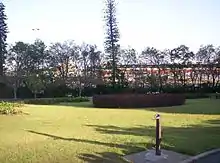The Rotunda lawns and beds, in association with the fig tree/rockery backdrop, are the primary focus and identity of the Park. The lawns slope down from the Bowen Bridge Road edge to the shrubbery border along the RNA showgrounds. The main path curves through the lower half from the southern corner at Bowen Bridge Road to the eastern corner at O'Connell Terrace. The bandstand rotunda and colourful central flower beds are the focal points of this area. This area contains evidence of the three major phases of garden development for the Park. The bunya (Araucaria bidwilli), hoop (Araucaria cunninghamii) and Cook (Araucaria columnaris) pines remain from the time of the QAS Gardens. The semi-circle of poinciana (Delonix regia) was established during the 1914 Council refurbishment and sits around an ornamental circular flower bed redesigned by Harry Oakman in the late 1950s.[1]