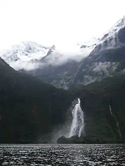 The Bowen River is a river in northern Fiordland, New Zealand.[2] The river originates near Mount Grave and is joined by many small streams on its way south through the valley. After close to 9 kilometres (6 mi), the river plunges from the hanging valley over the 162-metre (531 ft) Lady Bowen Falls and drains into the head of Milford Sound. The falls are named for Diamantina Bowen, wife of George Bowen, the fifth Governor of New Zealand.