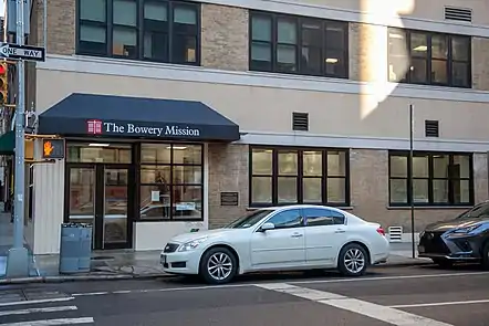 It is one of the oldest nonprofits in New York City[2] and continues to provide hot meals and chapel services three times daily at its historic 227 Bowery campus between Rivington Street and Stanton Street in the Bowery neighborhood of Manhattan, New York City.[3]