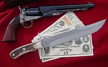 Even Texas passed legislation in 1871 prohibiting the carrying of a Bowie knife "on or about one's person" in public places, a law which remained in place until 2017.[60]