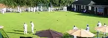 There are many different ways to set up the game. Crown Green Bowling utilises the entire green. A player can send the jack anywhere on the green in this game and the green itself is more akin to a golf green, with much undulation. It is played with only two woods each. The jack also has a bias and is only slightly smaller than the woods. At the amateur level it is usual for several ends to be played simultaneously on one green. If two moving woods meet, both are taken back and the shots replayed. If a moving wood strikes a stationary wood or jack from another end, it is again taken back and replayed, but the bowl struck is replaced where contact took place. The game is played usually to 21-up in Singles and Doubles format with some competitions playing to 31-up. The Panel (Professional Crown Green Bowls) is played at the Red Lion Bowling Green, Westhoughton daily and is played to 41-up with greenside betting throughout play.[12] The Green was formerly owned by the pub (now demolished[13]) but was purchased in 2007 by The Panel who paid the brewery £12,000 for the renowned green and its surrounds.[14]