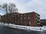Boland and Brewster Halls were built as dorms in 1968. Boland hall is named after John C. Boland (Class of 1899, Law 1901), and his wife, May L. Boland. Brewster Hall is named after Neal Brewster (Law 1902, SU Trustee) and his wife, Mabel Brewster Pierce. Brockway Hall, constructed in 2005, is named after Perle Brown Brockway (College of Medicine in 1908).[6] | ||