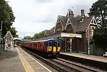 Box Hill & Westhumble is a railway station in the village of Westhumble in Surrey, England,[2] approximately 2 miles (3.2 km) north of Dorking town centre. Box Hill is located approximately 1⁄2 mile (800 m) to the east.[3] It is 21 miles 14 chains (34.1 km) down the line from London Waterloo. Train services are operated by Southern who manage the station, and South Western Railway.[3]