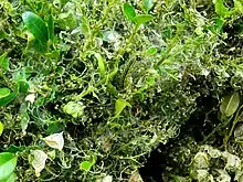 The larvae feed on the leaves and shoots of Buxus species.[14] Young larvae only eat the upper part of the leaf, leaving the hardest inside structure. The leaves are not destroyed completely but appear as "peeled" in small parallel beats lines, or almost completely. These peeled leaves eventually die. Old larvae are the most damaging: they massively and completely eat the leaves, sometimes leaving a thin part at the contour and centre of the leaf, however. Green ball-shaped frass can usually be seen on host plants.