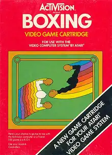 Boxing is a video game interpretation of the sport of boxing developed by programmer Bob Whitehead for the Atari VCS (later renamed to the Atari 2600).[1] It was published by Activision in 1980. It's one of the first video games developed by Activision. The game is based on Boxer, an unreleased 1978 arcade game from Whitehead's previous employer, Atari, Inc.[2] Boxer was written by Mike Albaugh who also wrote Drag Race for Atari, a game cloned by Activision as Dragster.[3]