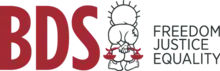 Boycott, Divestment and Sanctions (BDS) is a Palestinian-led[6] movement promoting boycotts, divestments, and economic sanctions against Israel. Its objective is to pressure Israel to meet what the BDS movement describes as Israel's obligations under international law,[7] defined as withdrawal from the occupied territories, removal of the separation barrier in the West Bank, full equality for Arab-Palestinian citizens of Israel, and "respecting, protecting, and promoting the rights of Palestinian refugees to return to their homes and properties".[8] The movement is organized and coordinated by the Palestinian BDS National Committee.[9]