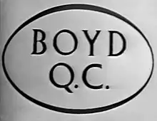 Boyd Q.C. is a British legal television programme transmitted from December 1956 to September 1964 by the ITV franchise holder Associated-Rediffusion. It focused around a barrister in a London courtroom and the cases in which he was involved. It ran for seven series in total.[1]