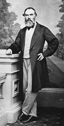 In 1852 he was appointed Colonial Secretary of South Australia, and in July 1853 had charge of the bill to provide for two chambers in the South Australian parliament. In the interim between the departure of Governor Young in December 1854 and the arrival of Sir Richard Graves McDonnell in June 1855, Finniss acted as administrator.[1][3] The bill of 1853 was rejected by the British government,[4] and a new bill was brought forward in 1855 providing for two purely elective houses. This received the royal assent in 1856.[5]
