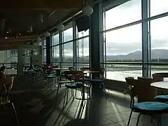 Airport security was introduced on 1 January 2005.[15] This put a large strain on the terminal capacity and the terminal had to be expanded. Makeshift solutions were used, such as plywood boards to allocate people through the security check. In late 2004, the airport started planning an all-new terminal building, as the old terminal was deemed both too small and out of date.[16] Construction of the NOK-115-million terminal started on 24 October 2006.[17] As the first airport in the world, Brønnøysund received SCAT-I, a satellite-based landing system, on 29 October 2007.[18] The new terminal opened on 26 May 2008, which allowed the a restaurant to open at the airport, all vehicles to be stored indoors[19] and included a new helicopter terminal.[4] Thon Hotel Torghatten opened in October 2009[20] and an airport surveillance radar was installed in 2010, making Brønnøysund the first regional airport in Norway to have one.[4]