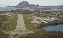Brønnøysund Airport (Norwegian: Brønnøysund lufthavn; IATA: BNN, ICAO: ENBN) is a regional airport located at the town of Brønnøysund, in the municipality of Brønnøy, Nordland county, Norway. The airport is owned and operated by the state-owned Avinor and serves the southern part of Helgeland. It has a 1,200-by-30-meter (3,937 ft × 98 ft) runway numbered 03–21[1][3] and is served by Widerøe, which operates their Bombardier Dash 8 aircraft to Oslo, Trondheim, Bodø, Bergen and other airports in Helgeland. The airport also serves offshore helicopter flights by CHC Helikopter Service to Norne and temporary oil rigs in the Norwegian Sea. In 2014, the airport served 117,471 passengers, making it the second-busiest regional airport in Norway, after Florø Airport.