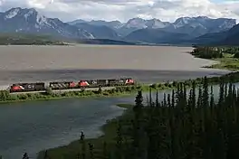 ![]() West bound train at Brûlé Lake, Alberta | |